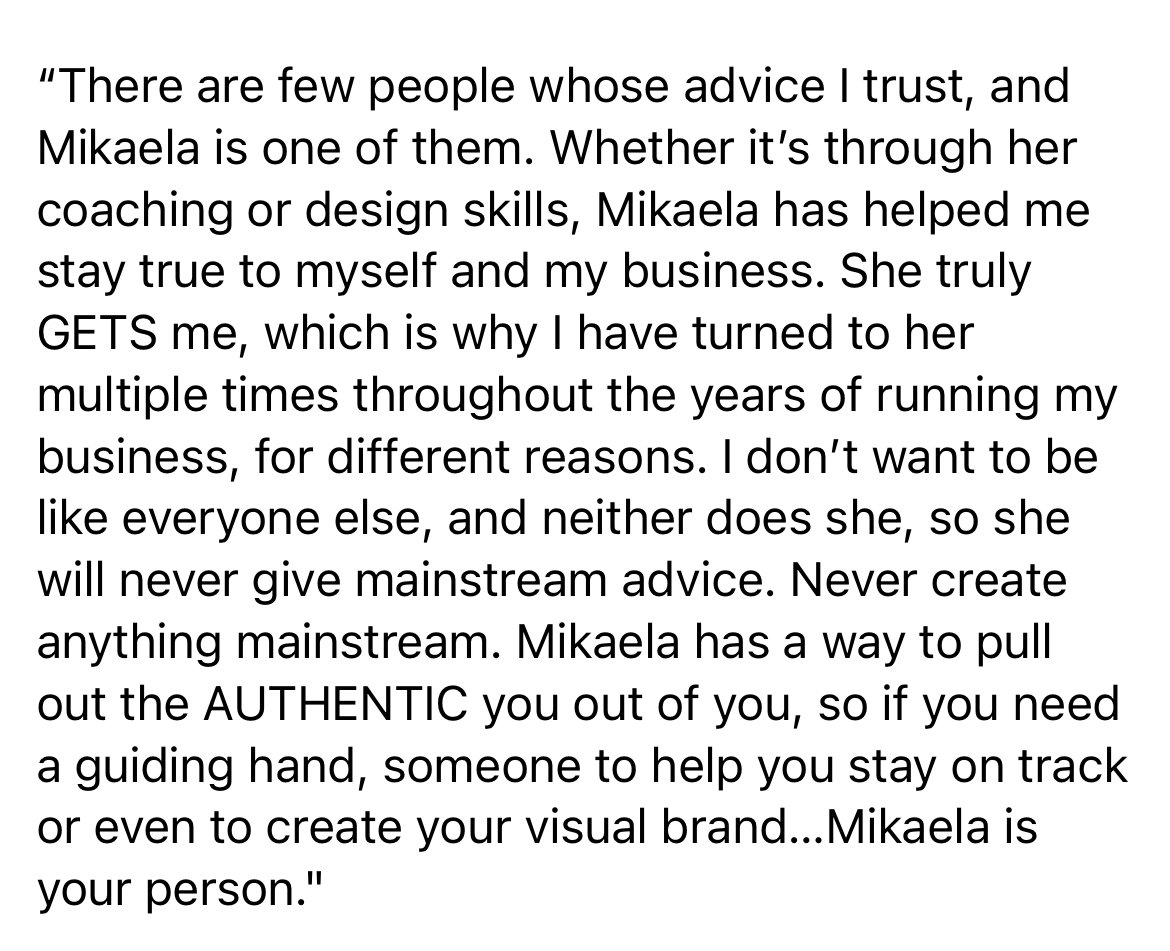"Honestly recommend hiring Mikaela as your creative partner in ANYTHING. The way she thinks.”